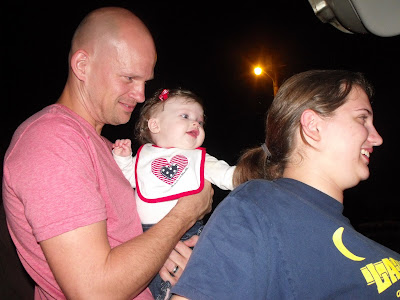 Ava and Daddy play "Superman," during the fireworks show. She was really not all that interested. But, it beats being terrified!