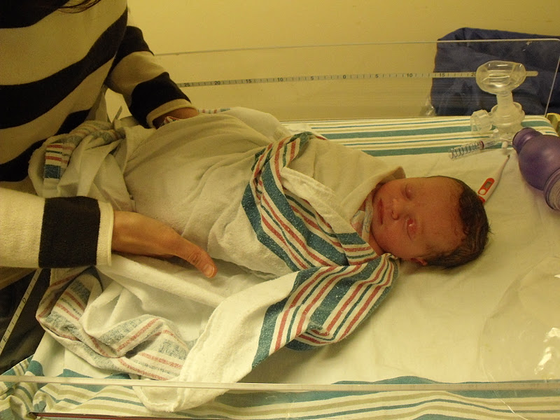 I was admitted to the hospital on Sunday night (December 12th, 2010) at about 5:30 pm. Two nurses, Andrea and Marie, helped me get into my gown and get settled in. Dr. Chwe was the doctor on call that day, so he was the one I saw until my doctor (Dr. Rosenstiel) came on call the next morning. This was a planned induction, so Dr. Chwe placed Cervidil in my cervix to help me dilate. I was dilated to 1.5 and not really effaced. Marie (my nurse) went ahead and put my IV dock in my left hand so that we could get an early start. Andrea came in and gave me a sleeping pill (Lunesta) so that I could sleep all the way through the night. Jeremy made his bed on the couch in the hospital room. Luckily it unfolded into a bed, so his 6'3" frame was able to scrunch into it.